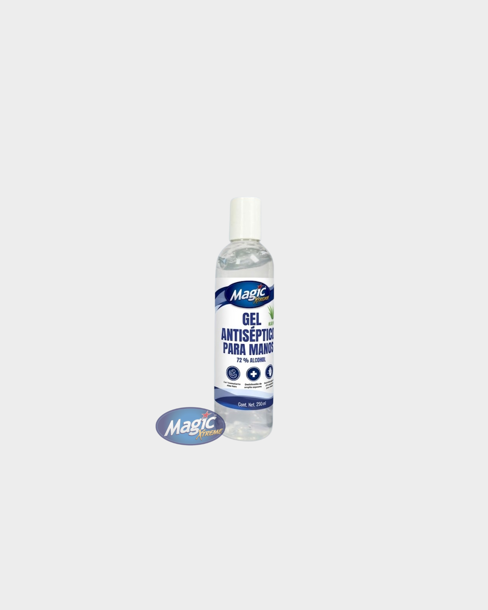 Gel antiséptico para manos de amplio espectro, formulado con 72 % de alcohol etílico, diseñado para eliminar virus, bacterias y hongos.