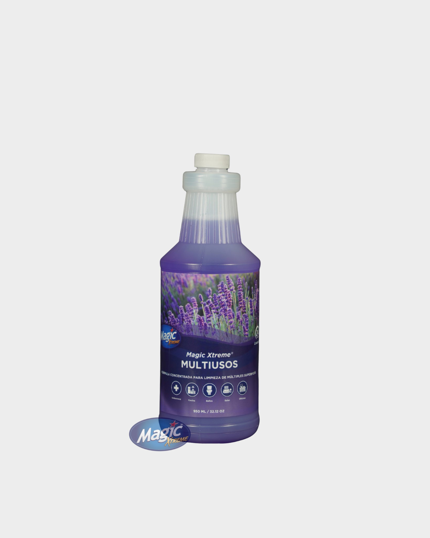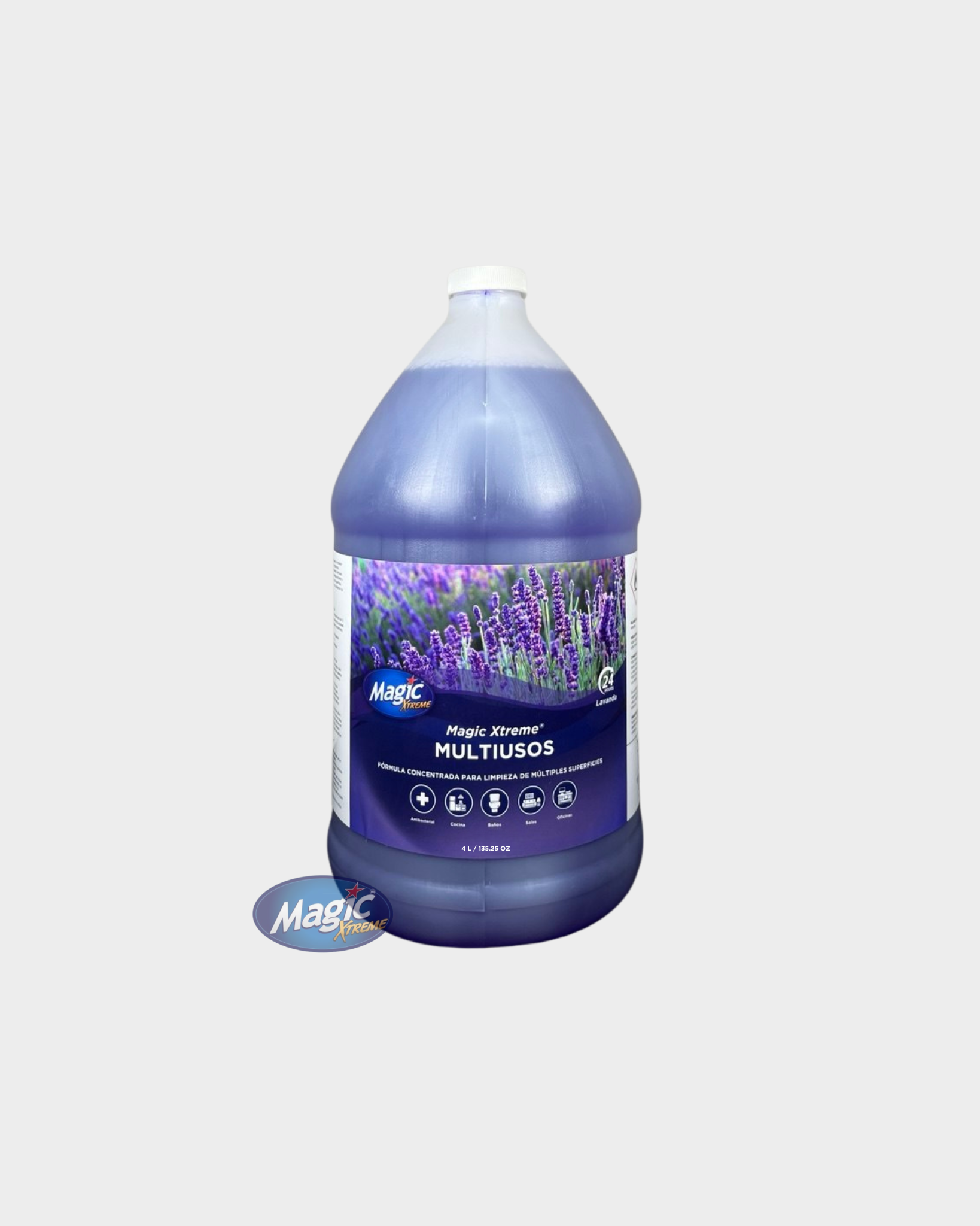 Limpiador líquido antibacterial, concentrado y biodegradable de uso general, que proporciona una limpieza eficiente y segura en múltiples superficies, ayudando a mantener la higiene y el cuidado de los materiales.