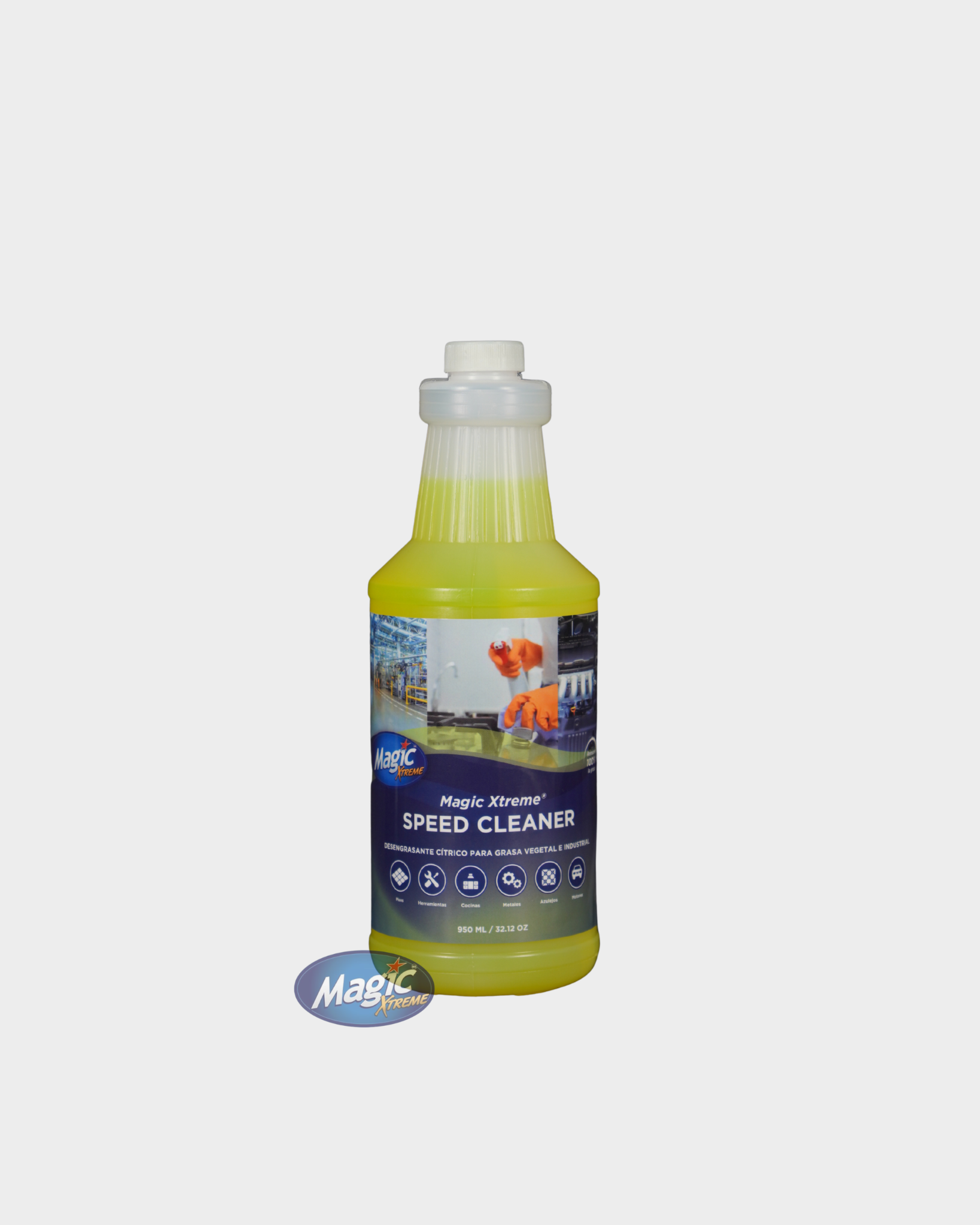 Magic Xtreme® Speed Cleaner es un desengrasante cítrico a base de agua, desarrollado con altos estándares de calidad y una fórmula exclusiva. Elimina eficazmente aceites, grasas vegetales e industriales, así como residuos de carbono en diversas superficies. Su composición utiliza agentes seguros y no peligrosos, cuidando tanto al usuario como al entorno.